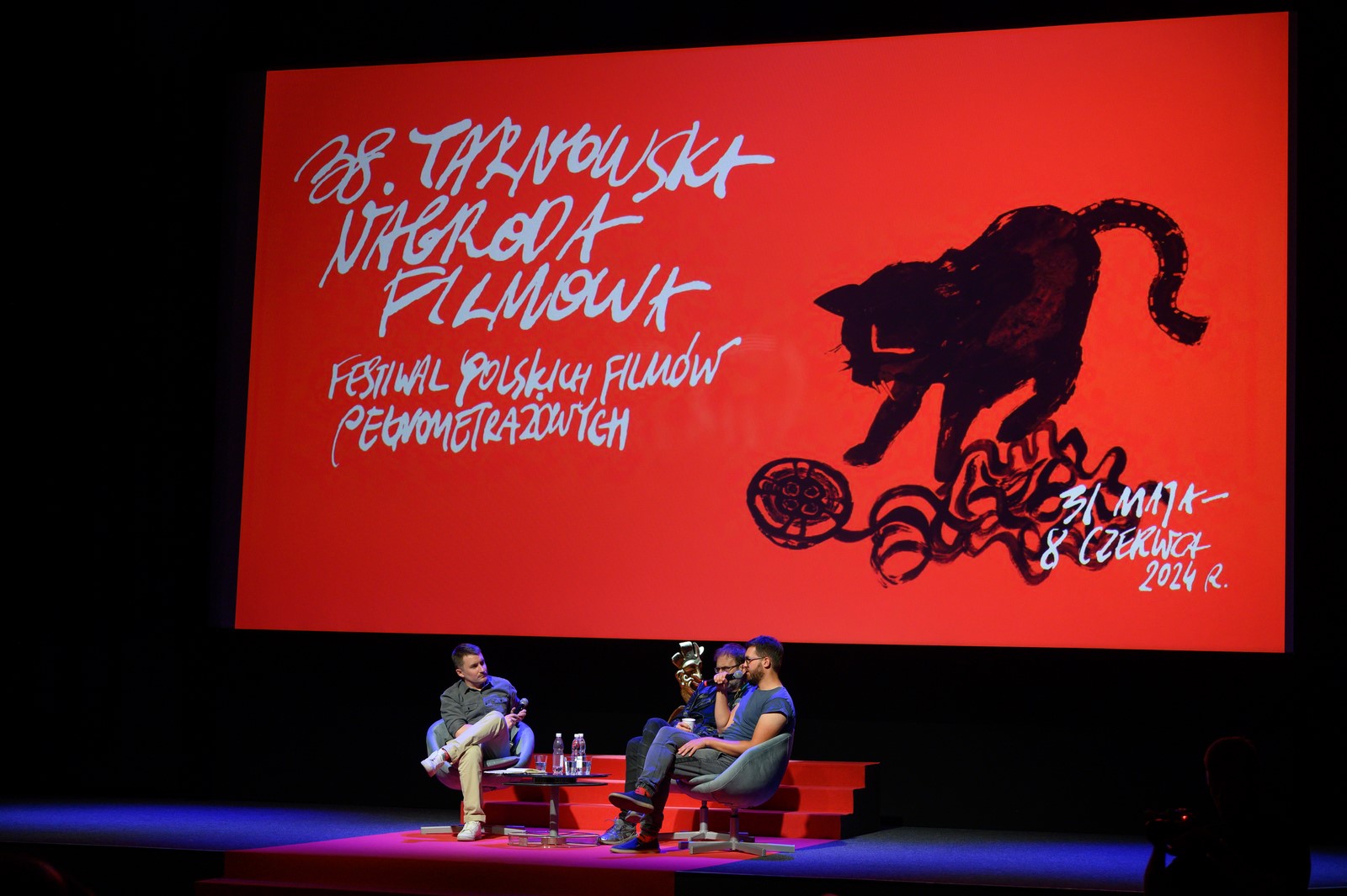 Fotorelacja z czwartego dnia 38. Tarnowskiej Nagrody Filmowej: pierwsze projekcje konkursowych bajek dla najmłodszych widzów w ramach Filmów Młodego Widza, prezentacja Jury Dziecięcgo 38. TNF, projekcja konkursowa "Tylko dzień i noc", po seansie spotkanie z reżyserem filmu Grzegorzem Brzozowskim - prowadzenie Ryszard Jaźwiński (Trojka - Polskie Radio), projekcja konkursowa "Biała odwaga", po filmie spotkanie z reżyserem Bartoszem Konopką i operatorem zdjęć górskich Marcinem Polarem - prowadzenie Kuba Armata (Dyr. artystyczny 38. TNF) - Kino Marzenie, 3.06.2024