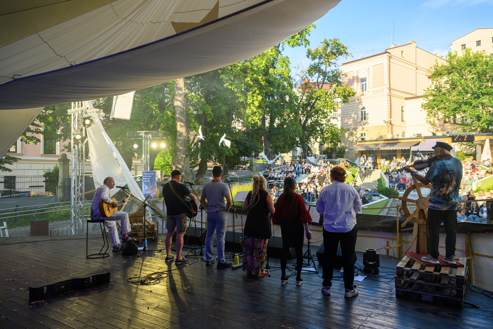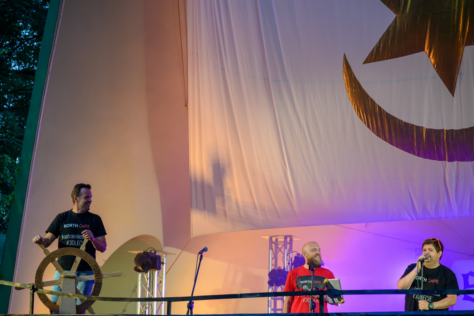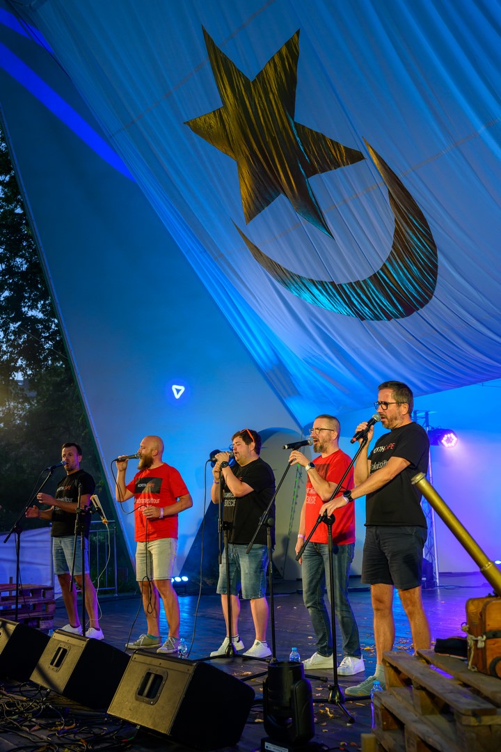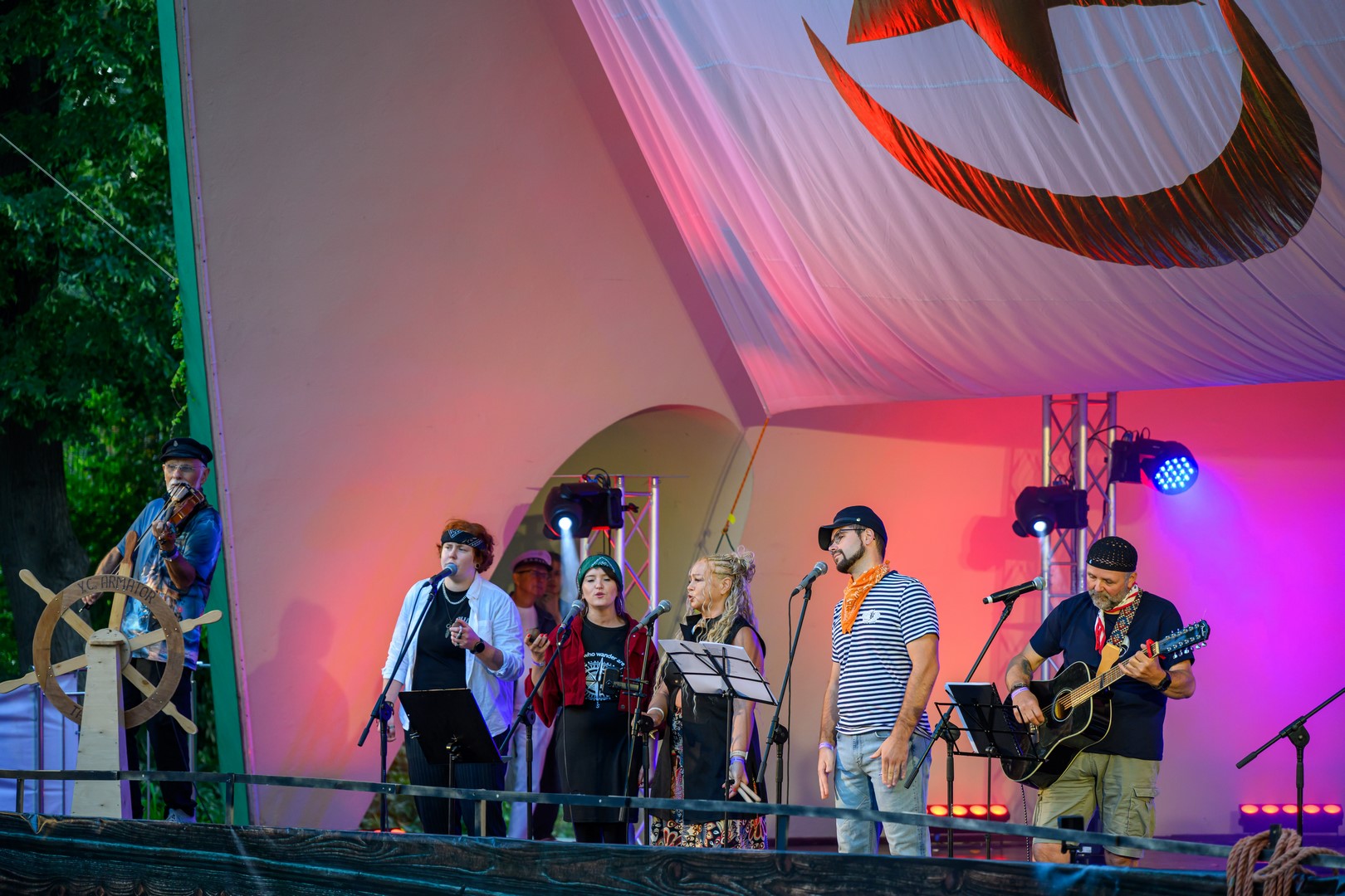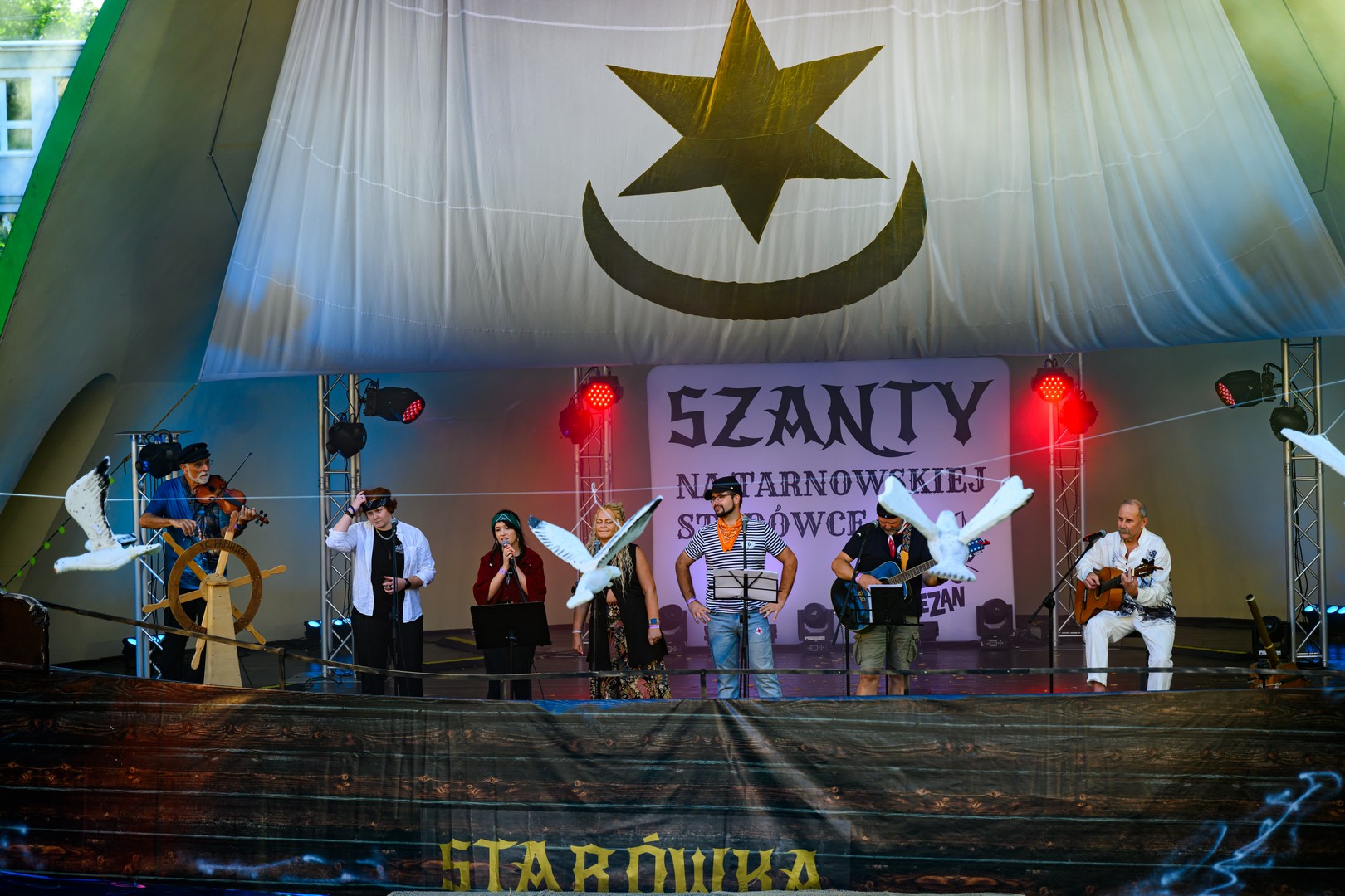 Fotorelacja z pierwszego dnia tegorocznych "Szant na Starówce" z udziałem zespołów Kliper Marzenie i obchodzącego jubileusz 30-lecia North Cape - Amfiteatr Letni, 22.08.2025