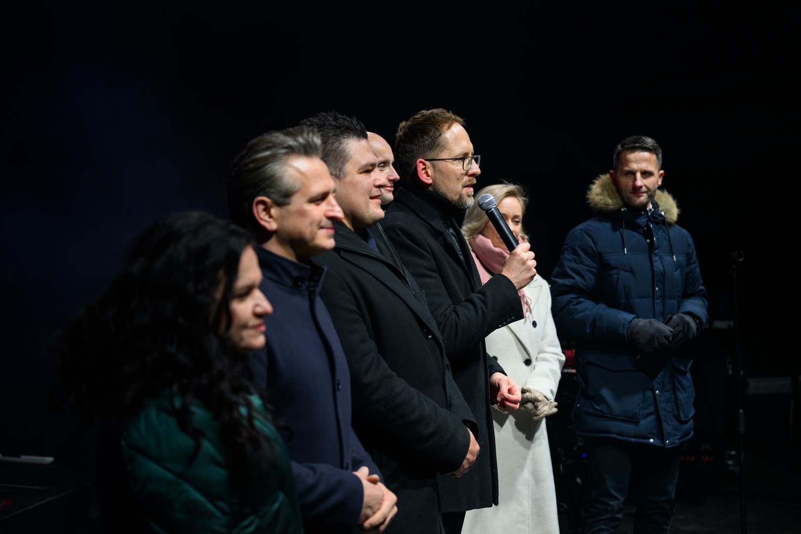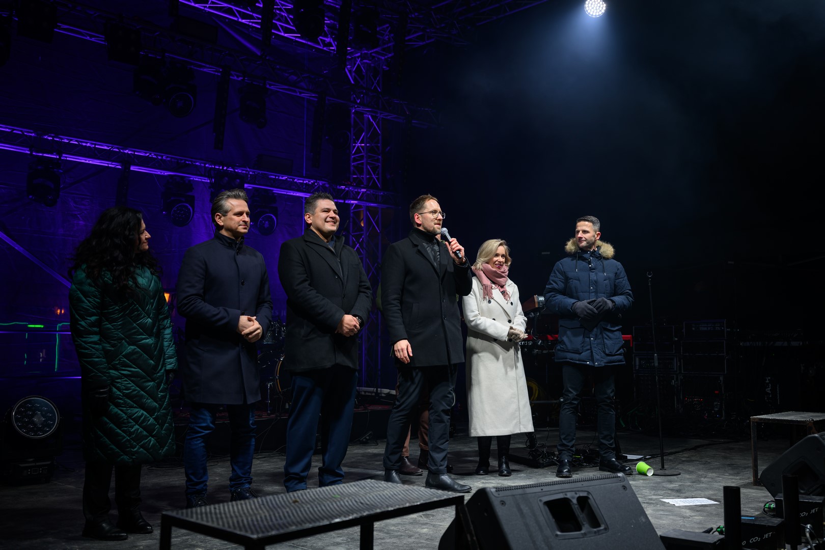 • Sylwester na tarnowskim Rynku - Na scenie włodarze miasta i i radni składający życzenia noworoczne mieszkańcom