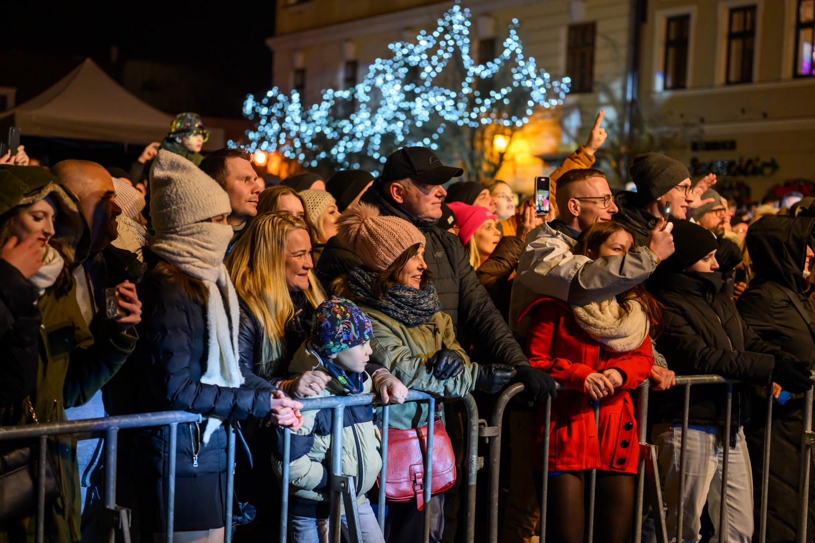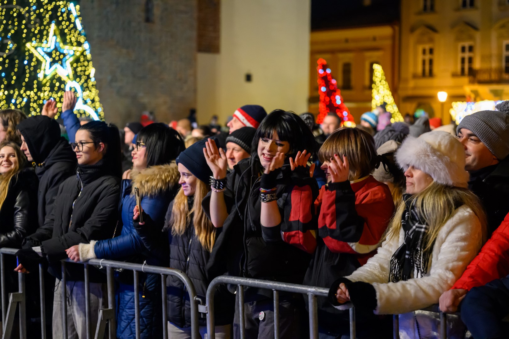 • Sylwester na tarnowskim Rynku - Bawiąca się publiczność zebrana przed sceną