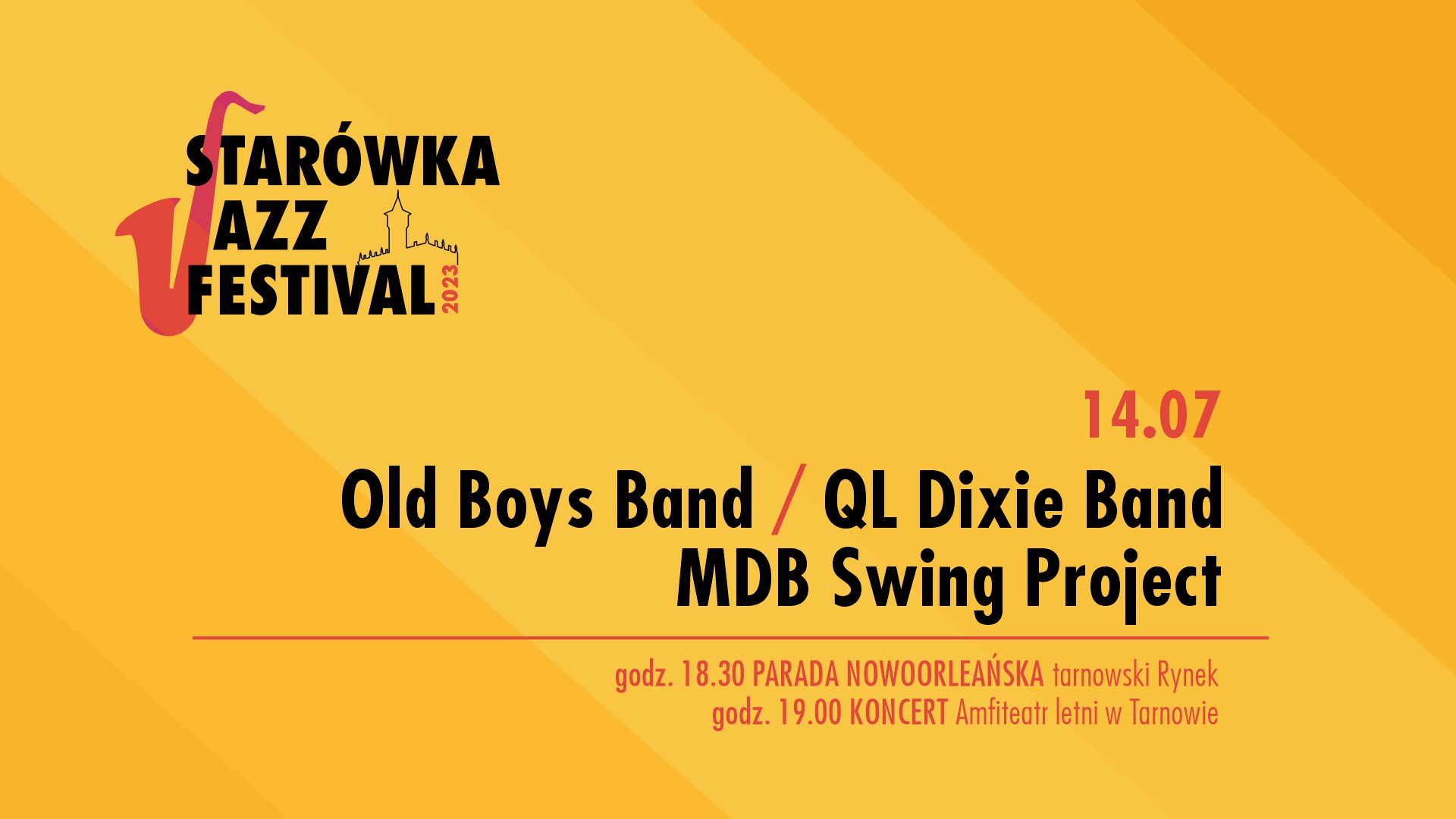 Na spotkanie z jazzem zapraszamy w trzy kolejne piątki począwszy od 30 czerwca. Zgodnie z tradycją, każdy z koncertów poprzedzi barwny roztańczony korowód - tzw. parada nowoorleańska. Prowadzona przez wytrawnych jazzmanów wyruszy spod tarnowskiego Ratusza i zaprowadzi do Amfiteatru letniego, gdzie czeka na nas główna część wieczoru - koncerty zespołów dixielandowych.